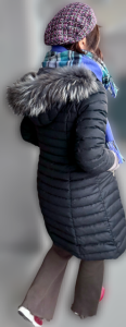 車なので、ファーのジレにストールを垂らしたコーデ。