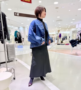 でも、オーバーサイズのデニムジャケットは、私がよく着ているCFCLの袖コンシャスのワンピースやカーディガンの上に羽織っても窮屈にならない。