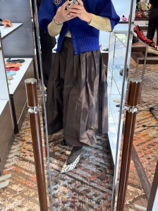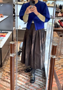 買う前はスカートばかりに合わせて試し履きさせてもらっていたが、なぜ、デニムやパンツに合わせなかったか、というと