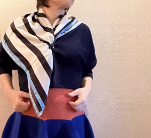 そしてもう一つ…こちらの方が、私の体型やキャラに合ってるスカーフアレンジ。